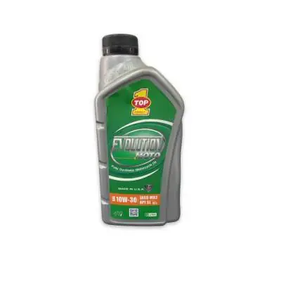 TOP 1 EVOLUTION MOTO SAE 10W-30 JASO MA2 es un aceite de motor de calidad premium especialmente desarrollado para motocicletas de 4 tiempos modernas. Su avanzada formulación con aceites base sintéticos y un exclusivo paquete de aditivos asegura el máximo rendimiento y protección, incluso bajo las condiciones de conducción más exigentes. Proporciona una lubricación superior que protege el motor, la caja de cambios y el embrague húmedo, manteniendo un desempeño óptimo en cada trayecto, desde el tráfico urbano hasta las rutas abiertas. Cumple y excede las especificaciones internacionales API SN y JASO MA2, lo que lo convierte en la elección ideal para motocicletas de marcas líderes como Honda, Yamaha, Suzuki, Kawasaki y todas aquellas que requieran un aceite 10W-30.